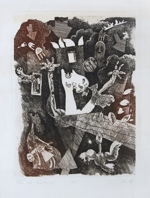 Dembo worked in various forms — oil, watercolor, pastel, graphics — showing a distinctive approach to both form and color. His compositions balance between recognizable figures and pure geometry, between rational design and emotional impulse. The influences of constructivism and suprematism are evident, but transformed through his personal perspective. His print series —l inocuts, etchings — demonstrate a masterful line and can create powerful, evocative images.