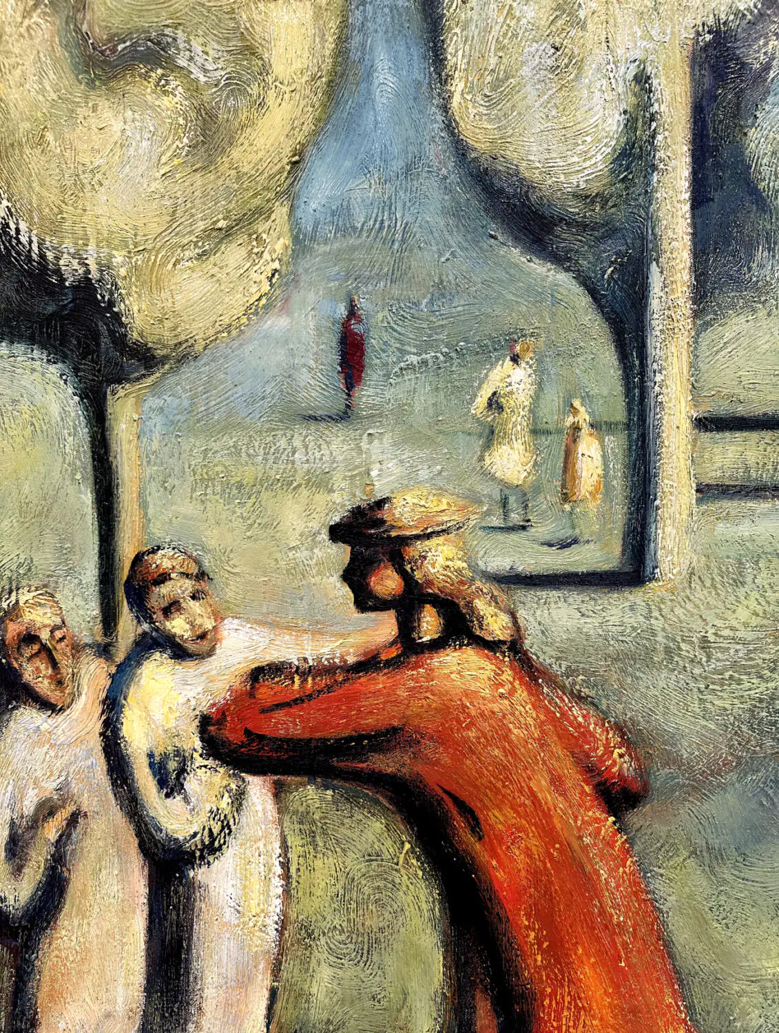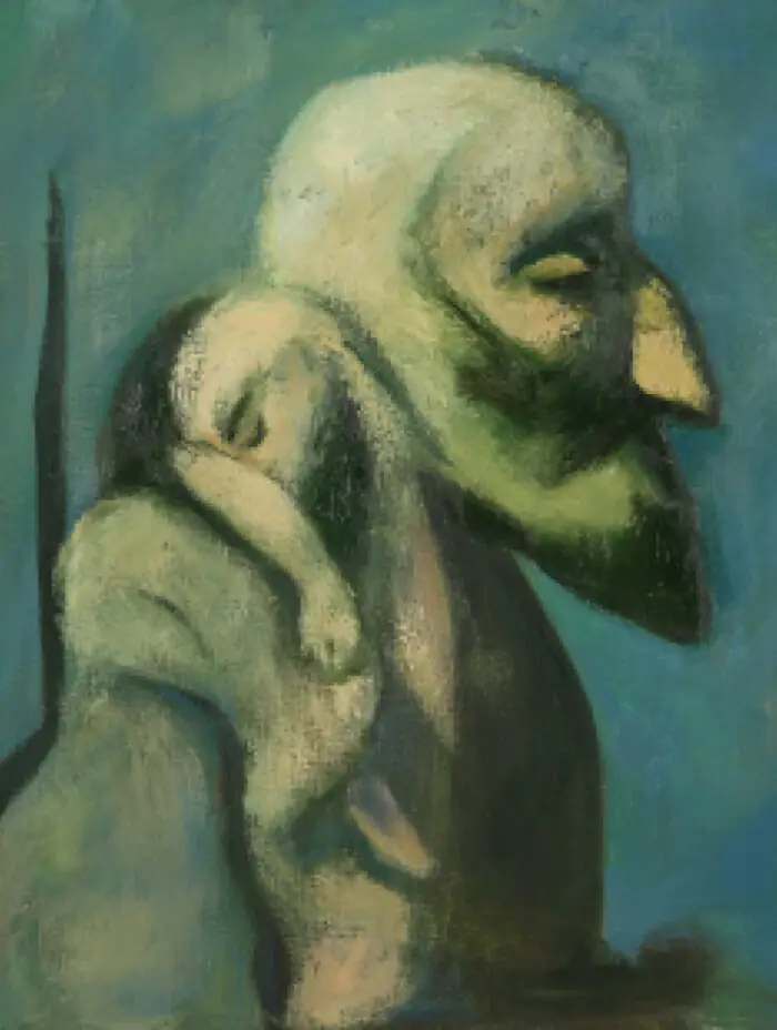 For Delle, the human figure and face are her main means of expression. Her portraits are painted broadly, with unrestrained, large planes of color, conveying penetrating psychological depth. Delle does not strive for external likeness — she seeks the essence of a person, hidden emotions, and unspoken thoughts.