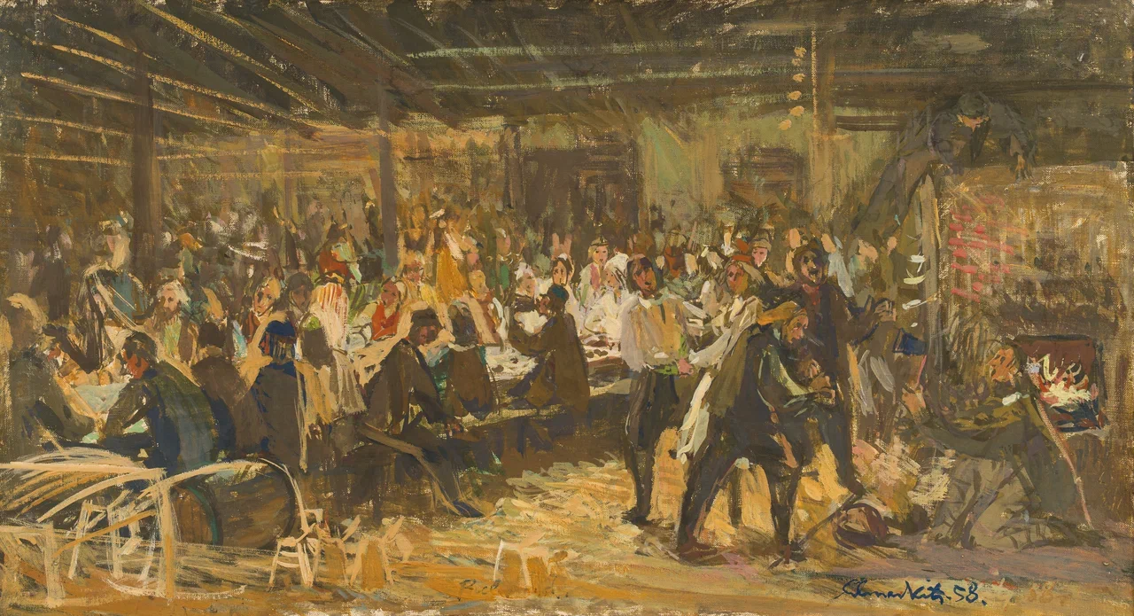 Elmar Kits mastered styles from realism to abstraction. His monumental 1947 group portrait remains the largest in Estonian painting, while his 1945 still life “Flowers” became a national classic.