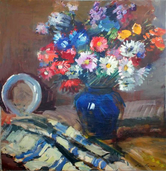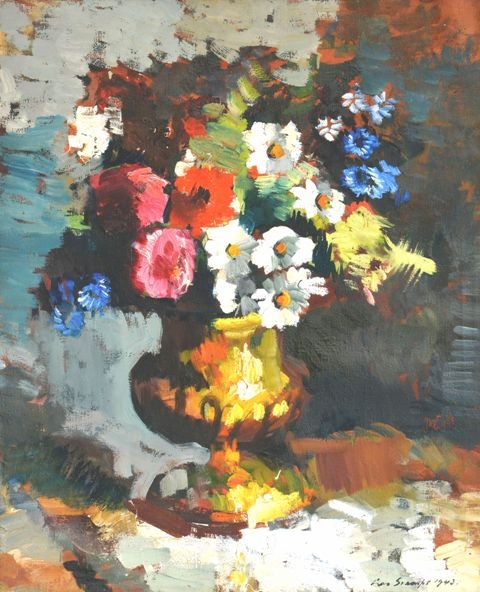 Above all, Svemps was a virtuoso colorist. His still lifes astonish with the richness of their color relations despite their seemingly simple subjects. Every object — a vase, an apple, a loaf of bread — is painted with such care and affection that it acquires an almost symbolic significance. Svemps’s landscapes are filled with light and air, exuding a joy for life and an appreciation of nature.