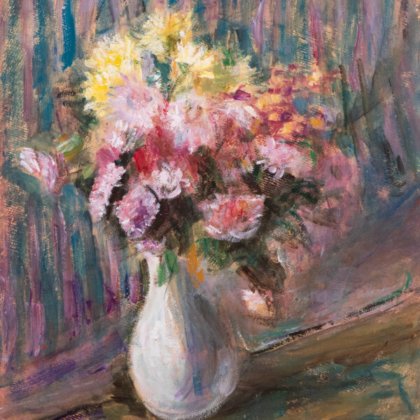 Linda Kits-Mägi’s artistic voice was shaped by late French Impressionism, whose influence is evident in her approach to color and light. She worked primarily in oil on cardboard, a medium that allowed for spontaneity and freshness in her compositions.