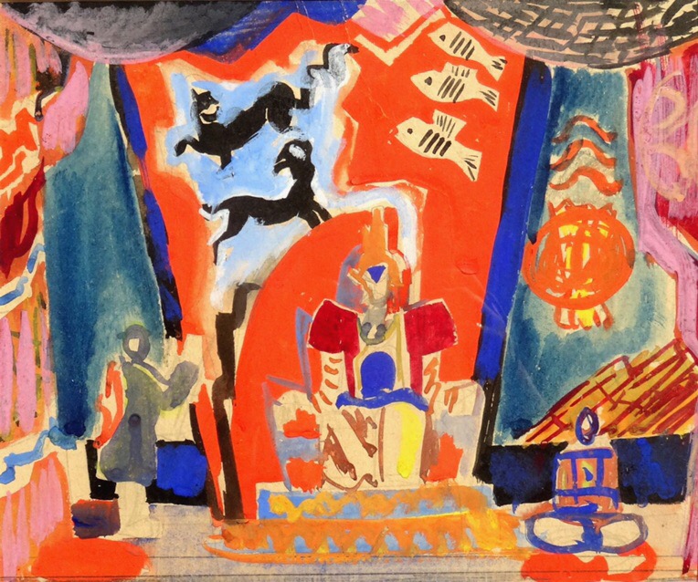 Suta was not only an easel artist: he painted porcelain at the Riga Porcelain Factory, creating unique decorative plates, vases, and sets in a cubist style — now highly prized at auction. He also designed furniture, interiors, costumes, and worked in theater.